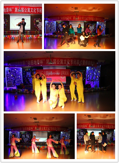 12月14日晚,以“‘宿’青春梦想·‘筑’文明家园”为主题的“动感地带杯”第十届公寓文化节闭幕式暨颁奖晚会在活动中心绿梦休闲吧成功举行。校党委委员、宣传部部长陈永富,校学工部、建管处、团委、后勤集团相关领导,相关学院负责人,中国移动临安分公司负责人等出席了晚会。学生代表、后勤员工近300人观看了晚会。