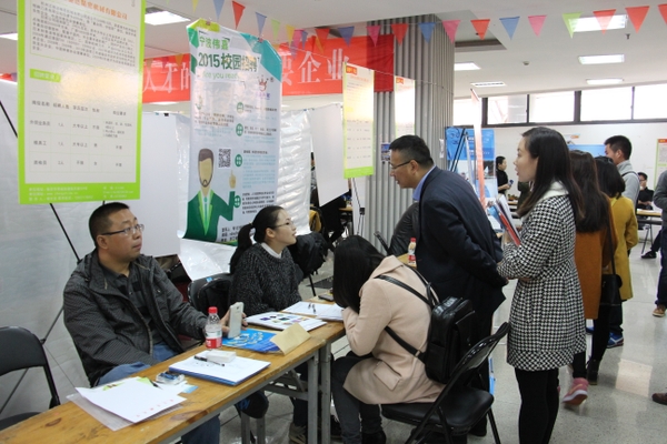11月28日,由浙江省高校毕业生就业指导服务中心、beat365官网学生处就业指导服务中心主办,工程学院、经管学院、马法学院、外语学院联合承办的首场2015届毕业生校园招聘会在东湖校区活动中心举行。招聘会吸引150余家单位参加,提供就业岗位2000余个,涉及工业设计、外贸销售、培训教师、行政助理等多个领域。