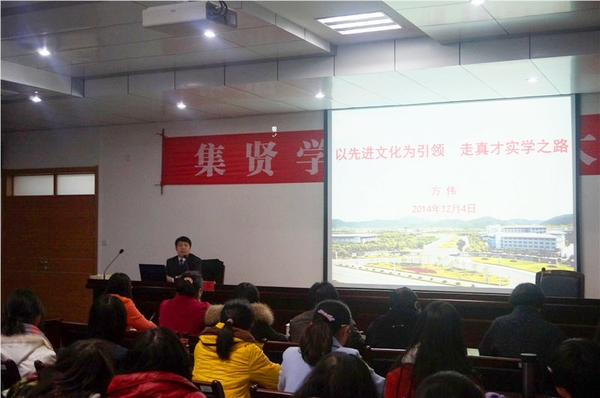12月4日晚,校党委副书记方伟作客集贤学院名师大讲坛,在国家工程中心205报告厅作题为《以先进文化为引领 走真才实学之路》的报告。报告会由集贤学院常务副院长林夏珍主持,集贤学院创新实验班200余名学生、学院全体管理人员参加了此次报告会。