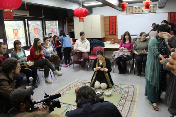 在诺维萨德大学孔子学院,beat365官网访欧代表团为当地的师生呈现了《茶艺红楼梦》、潮州功夫茶等茶艺。大家席地而坐,品茗谈心其乐融融;在罗兰大学孔子学院,访欧代表团受邀为正在参加培训的中东欧八十余位中外汉语教师开展了茶文化的讲学和呈现;在格拉茨大学孔子学院,二十余位教授和老师现场聆听了王旭烽教授的讲课,从人文科学和自然科学的双重角度学习和体验了中华茶文化。