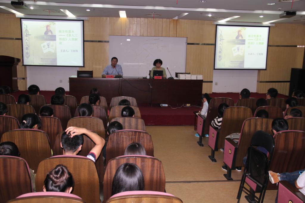 10月20日晚,茅盾文学奖得主、茶文化专家、校文化学院院长王旭烽教授应邀在图书馆第二报告厅为全校师生作《南方有嘉木——茶人三部曲》文学讲座。讲座由图书馆馆长徐光辉教授主持。