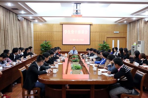 10月29日下午,学校召开学生骨干座谈会。校党委副书记余杰出席座谈会,校研工部、团委负责人,各二级学院分团委书记、学生会主席、校级学生组织主席团成员参加座谈会。座谈会由校团委主持工作副书记侯锡铭主持。