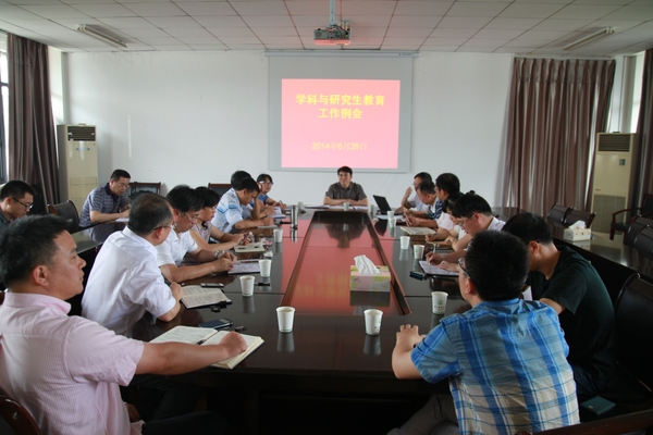 6月26日,副校长张立钦主持召开学校2014年岗位聘任后首次学科建设与研究生教育工作例会。各学院相关负责人,研究生处、学科建设办相关人员参加了本次会议。