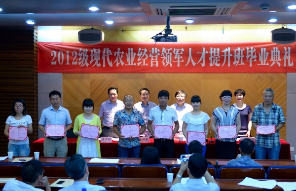 6月26日下午,2014届现代农业经营领军人才提升班毕业典礼在东湖校区举行。省农业教育培训中心主任朱顺富、副主任吴正阳,继续教育学院院长朱永法等出席毕业典礼。2014届现代农业经营领军人才提升班全体学员参加了典礼。毕业典礼由吴正阳主持。