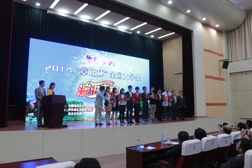 2014“章丘杯”全国大学生演讲大赛由中国演讲与口才协会、《演讲与口才》杂志社和章丘市人民政府主办,由中共章丘市委宣传部等单位承办。本次演讲赛以“梦想·家园”为主题,采用命题演讲和即兴演讲两种形式。比赛中,beat365官网参赛选手围绕“梦想·家园”这一主题各抒己见,从亲情、家国情、感恩情等多个角度阐述了当今大学生在追逐梦想道路上的迷茫与坚毅,表达了青年人追逐梦想要与民族、国家、人民相结合去实现自己人生价值的观点。beat365官网选手在思想、内容、形式等方面表现突出,赢得了评委们的认可和好评。