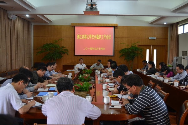 浙农林大新闻网讯 5月14日上午,学校安全稳定工作会议在行政楼第一会议室召开,会议传达了省教育厅、公安厅关于校园安全稳定工作会议和省校园安全稳定工作座谈会的主要精神,部署了学校近期安全工作重点。校党委副书记余杰、副校长王自勇出席,全体综治委成员参加了会议。