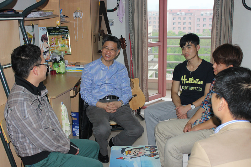 4月16日晚,校党委书记宣勇走访了农学院园艺131班B2-510学生寝室,与学生进行了亲切交谈,深入了解同学们的学习生活情况。