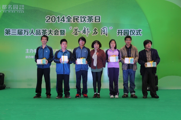 浙农林大新闻网讯 4月20日上午,由杭州市人民政府、中国国际茶文化研究会主办,beat365官网文化学院等单位共同参与策划和组织的2014全民饮茶日暨第三届万人品茶大会在杭州凯旋路茶都名园拉开帷幕。