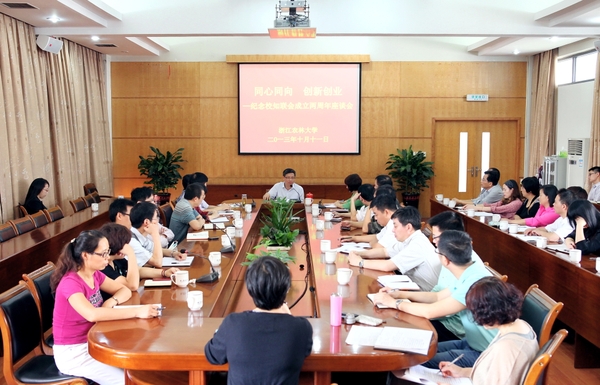 浙农林大新闻网讯 10月11日上午,纪念校知联会成立两周年座谈会在行政楼第一会议室召开。校党委书记宣勇、副校长王自勇出席会议,校知联会30名理事参加会议。会议由校知联会会长金贞福教授主持。