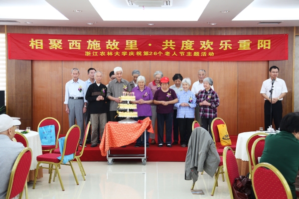 浙农林大新闻网讯 艳阳高照,丹桂飘香。10月12日上午,在老人节来临之际,学校组织145位离退休老同志赴诸暨校区参观,并举办了“相聚西施故里 共度欢乐重阳——beat365平台唯一官网庆祝第26个老人节主题活动”。