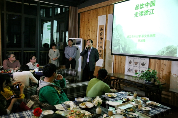 浙农林大新闻网讯 4月15日晚,第五届全民饮茶日系列活动之“品饮中国 走读浙江”茶文化讲学在学16中国茶谣馆如期举行。校长周国模莅临活动现场并致欢迎辞。校党委宣传部、国际处相关负责人参加此次活动。