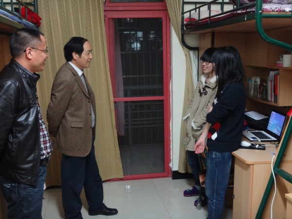 浙农林大新闻网讯 2月28日晚,校长周国模在后勤集团负责人的陪同下,到学生公寓走访看望学生。