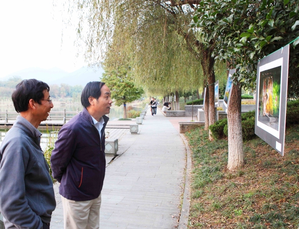 浙农林大新闻网讯 近日,由文化学院摄影系主办的“在路上——川藏行摄影之旅主题影展”在东湖边举行。校长周国模以及文化学院院长王旭烽参观了摄影展。