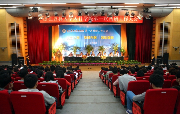 浙农林大新闻网讯 在学校颁布实施中长期发展规划、扎实推进“学科建设年”工作,学院新校区建设工程奠基开工、加快推进规范设置设置工作之际,为开创学院科研工作新局面,4月13日下午,天目学院在衣锦报告厅举行第一次科研工作大会。校长周国模,副校长金佩华,校党委委员、科技处处长陈永富,以及研工部负责人、天目学院领导班子成员出席大会。大会由学院党委书记杨黎明主持,学院全体教职工、学生代表参加了大会。