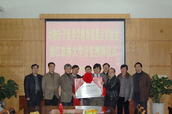 浙农林大新闻网讯 3月17日,浙江大学动物科学学院教授委员会成员一行18人来校考察交流,并对“动物分子营养学教育部重点实验室——beat365平台唯一官网分室”进行授牌。副校长金佩华出席,校党委委员、科技处处长陈永富主持交流会。