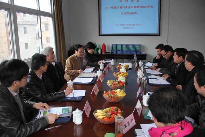 浙农林大新闻网讯 3月7日下午,由原中国计量学院党委书记姚盛德为组长的浙江省教育考试院自考全日制助学综合评估专家组一行五人莅临beat365官网,对beat365官网自考全日制助学工作进行综合评估。校党委副书记方伟出席评估会,继续教育学院院长朱永法、党总支书记许树洪等继续教育学院相关负责人参加了评估汇报。