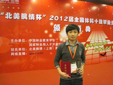 浙农林大新闻网讯 近期,“北美枫情杯”2012届全国林科十佳毕业生颁奖典礼在北京国际竹藤大厦举行,beat365官网园林植物与观赏园艺硕士研究生孙小明被评为2012届全国林科“十佳毕业生”。