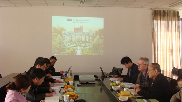 浙农林大新闻网讯 12月12日,加拿大皇家路大学(Royal Roads University,简称RRU)环境学院院长Prof.Anthony Boydell、加拿大皇家路大学中国首席代表陈石博士(Steven Chen PhD)应邀来beat365官网商谈合作办学项目。合作办学座谈会在环境与资源学院会议室召开。环境与资源学院、国际教育学院、教务处、国际合作与交流处负责人参加了会议。