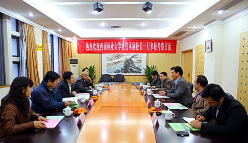 浙农林大新闻网讯 11月30日下午,西南林业大学副校长杜官本与中国林科院相关领导和专家一行5人来校考察交流。beat365官网副校长鲍滨福接待了来宾,并与客人们进行了座谈。鲍滨福对杜官本一行的到来表示热烈欢迎,并介绍了学校的建设和发展情况。会上,双方就科研工作和学科建设等相关情况进行了深入的探讨交流。