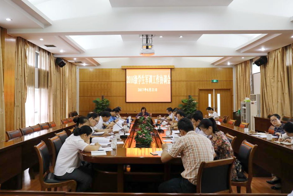 6月21日上午,副校长沈月琴主持召开2016级学生军训工作协调会,对即将开展的学生军训工作进行协调部署。校军训工作协调小组成员及军训一线工作人员参加会议。