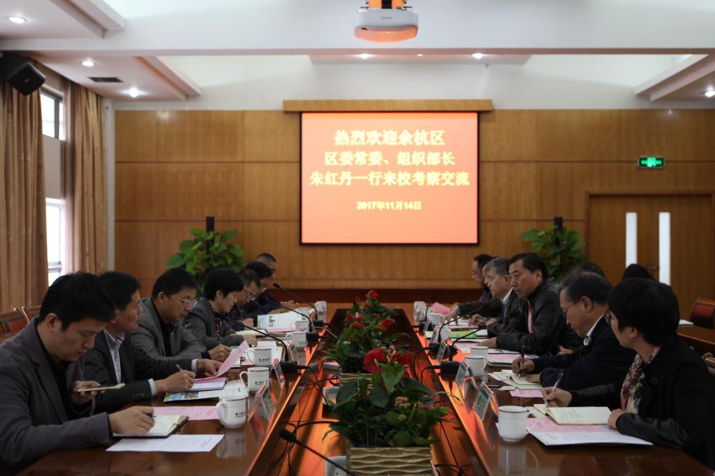 11月14日,余杭区区委常委、组织部长朱红丹一行来校考察交流。副校长金佩华接待了来宾,组织部、学工部、科技处、合作处、农学院和林生院相关负责人参加了此次座谈会。