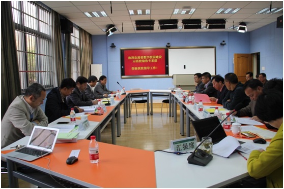 信息与教育中心相关负责人详细汇报了从2014年省数字校园示范校立项以来的总体建设情况,介绍了在安全体系建设、信息技术与管理的融合、信息技术与教育教学的融合等方面的建设过程、经费投入和取得的成效,并对科研管理、课程中心、掌上后勤等系统进行了现场演示。