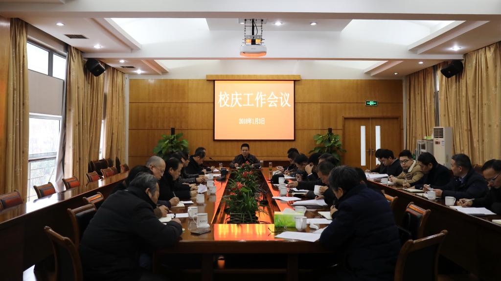 1月3日下午,学校召开校庆工作会议。会议由校党委副书记、校庆办主任史永安主持,校庆办副主任、各校庆筹备工作组负责人、各学院校庆工作负责人及校庆办全体成员参加会议。