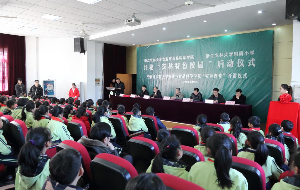 1月9日下午,农学院与附属小学共建“农林特色校园”启动仪式暨“农业课堂”开讲仪式在附属小学举行。副校长王自勇,农学院院长朱祝军、党委书记蔡永华,临安区教育局局长章威力,以及农学院、临安区锦城中心学校和附属小学有关负责人出席仪式。