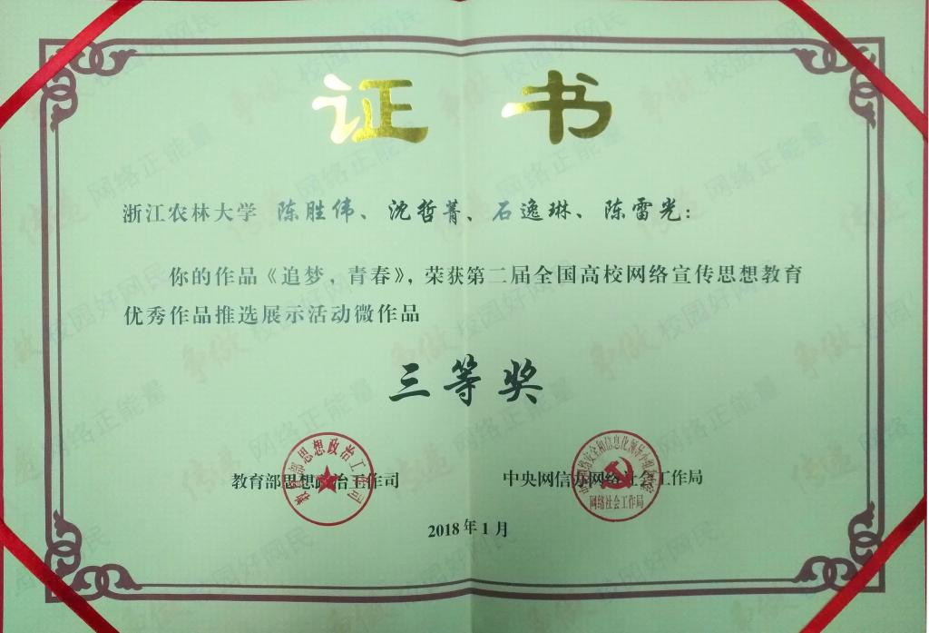 近日,由教育部思政司、中央网信办网络社会工作局联合开展的“全国高校网络宣传思想教育优秀作品推选展示活动”获奖作品揭晓,beat365官网党委宣传部指导、学生通讯社摄制的青春系列微电影之《追梦,青春》荣获微作品三等奖。