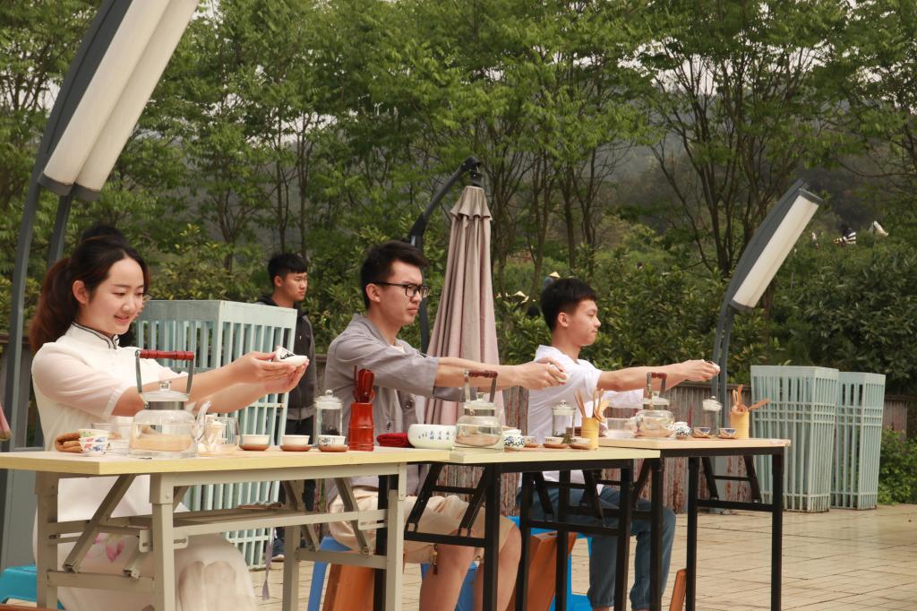 此次师生茶文化节由“陌上采芳”师生采茶大赛,“焙荼芼香”炒茶观摩活动,“茶想衣裳”茶服秀,“曲水泛花”公益茶会等四部分组成。全校200余名师生参加活动。