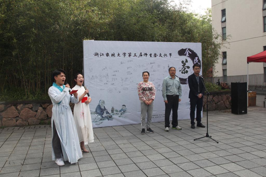 4月15日,由校党委宣传部、校工会、校团委、农学院、文化学院联合举办的“悠悠茶香,喜迎华诞”beat365平台唯一官网第三届师生茶文化节在东湖校区茗茶园举行。校党委委员、宣传部部长胡祖吉,校工会主席张霞妃,农学院党委书记蔡永华出席了活动。
