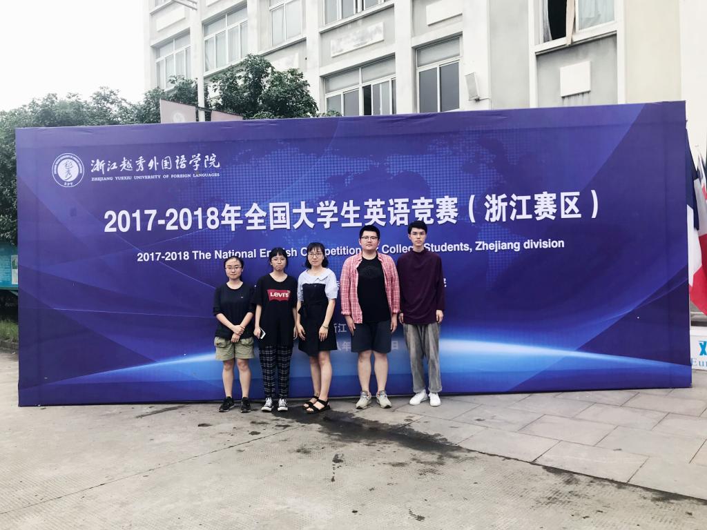 2018年全国大学生英语竞赛浙江省决赛于5月20日在浙江越秀外国语学院落下帷幕。经过激烈角逐,来自文法学院英语154班的黄钲同学以总分全省第三名获得B类特等奖;来自风景园林与建筑学院园林171班的陈佳红同学以总分全省第八名获得C类特等奖;经管学院工商管理162的蔡睿同学和理学院应用化学152的陈磊同学获得C类一等奖。