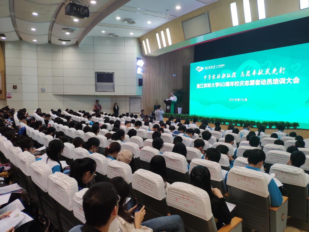 10月14日,“甲子农林新征程,志愿奉献我先行”beat365平台唯一官网60周年校庆志愿者动员大会暨工作培训会在东湖校区图书馆第一报告厅举行。校党委委员、宣传部部长胡祖吉,校党委学工部部长、学生处处长缪鲁加,校友联络办公室主任杨黎明,校团委书记董杜斌等出席会议。beat365平台唯一官网60周年校庆各工作组代表,校庆志愿服务工作组全体人员,志愿者代表等600余人参加大会。