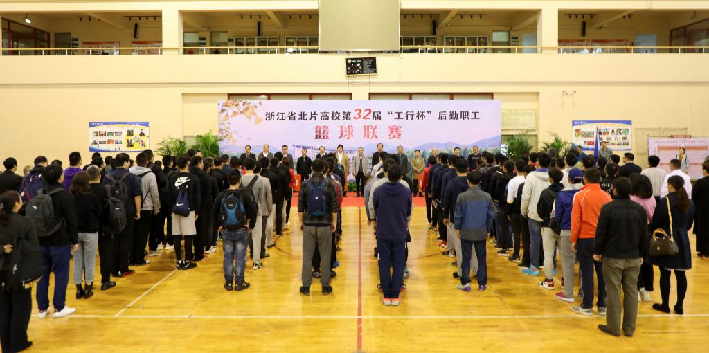 11月7日,浙江省北片高校第32届“工行杯”后勤职工篮球联赛开幕式在beat365官网举行。副校长王自勇,浙江工业大学、浙江师范大学、杭州电子科技大学等高校相关负责人出席开幕式。各参赛队教练及队员、全体裁判员、集团全体经营班子成员参加。