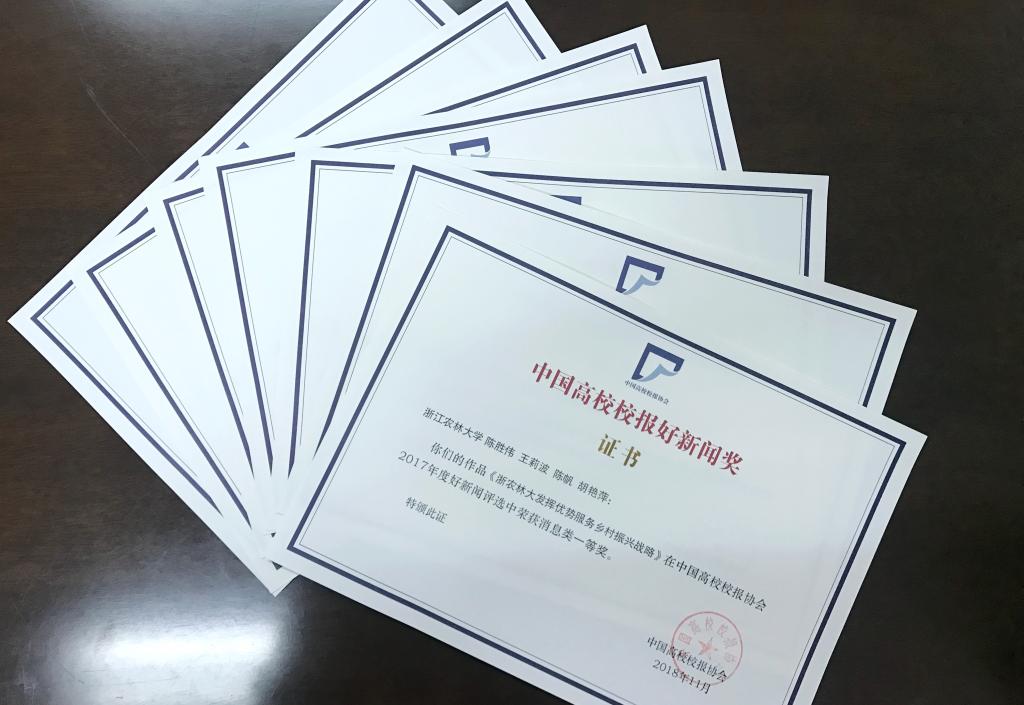 12月3日,中国高校校报协会2018年年会暨第三届中国高校传媒发展高端论坛在福建福州召开。beat365官网推荐作品《浙江农林大发挥优势服务乡村振兴战略》《<beat365平台唯一官网报>2017年4月第03版》《办好校报 服务发展》分别获消息类一等奖、版面类二等奖和言论类三等奖。
