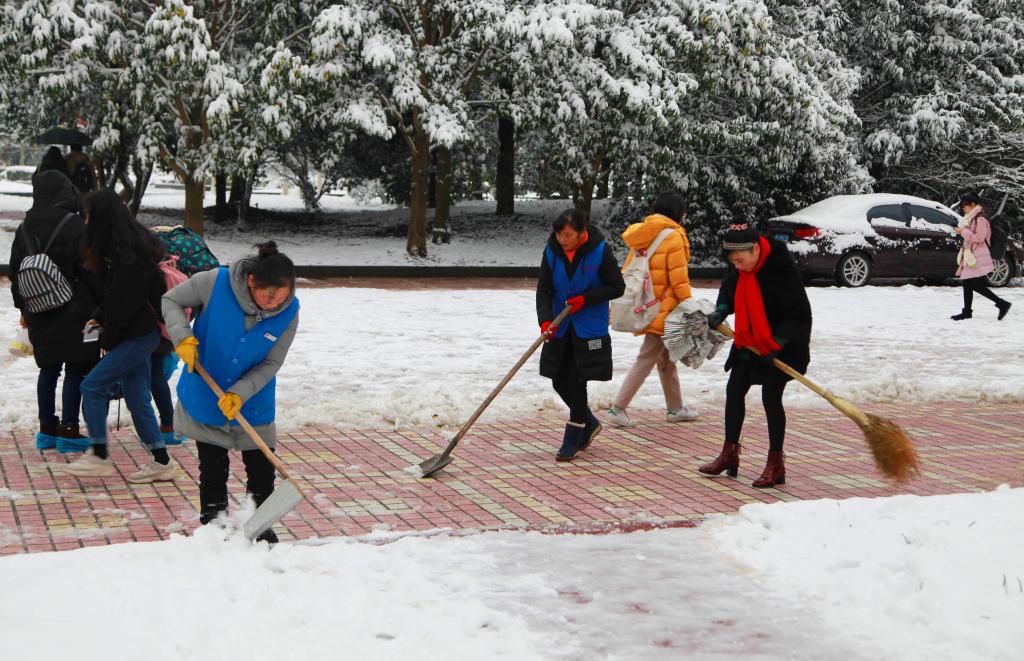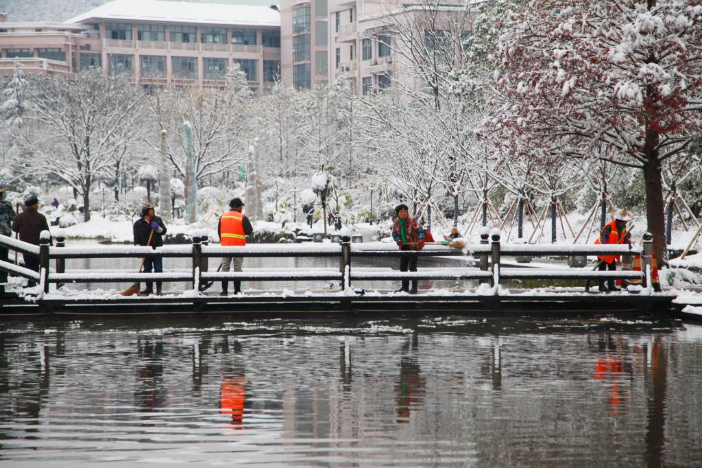经过师生们的努力,东湖、衣锦校区主干道、人流量大的道路全部清除了积雪和冰层,可能存在安全隐患的地方也进行了妥当处置,植物得到了有效保护。师生工作学习生活未受到明显影响,教学科研等工作正常有序进行。