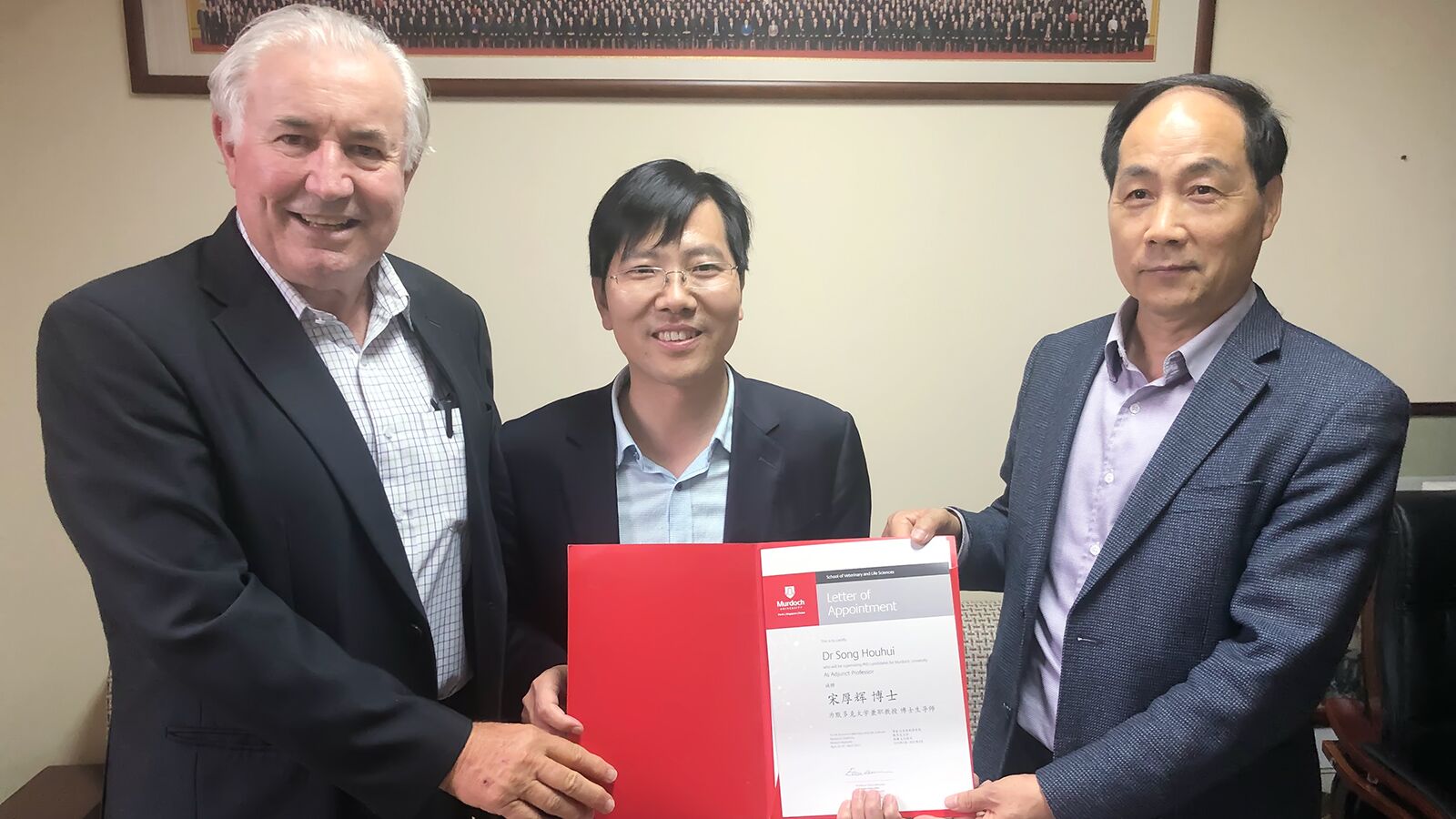 近日,澳大利亚莫道克大学教授、动物流行病学家John Edwards教授一行访问beat365官网,并为宋厚辉教授颁发莫道克大学兼职教授和博士生导师聘书。