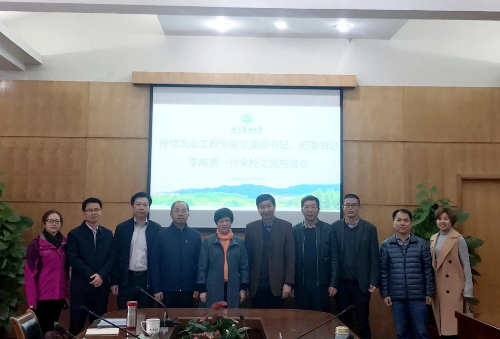 11月18日,仲恺农业工程学院党委副书记、纪委书记李海燕一行6人来校考察交流,党委书记周国模会见了李海燕一行。纪委书记钟平与李海燕一行开展座谈交流。