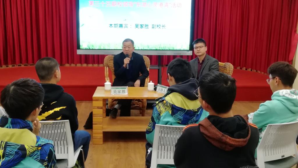 11月20日晚,副校长吴家胜作为嘉宾出席了第三十五期校领导“东湖心灵港湾”活动。学工部负责人、心理中心专职老师以及学生代表共30余人参加了此次活动。