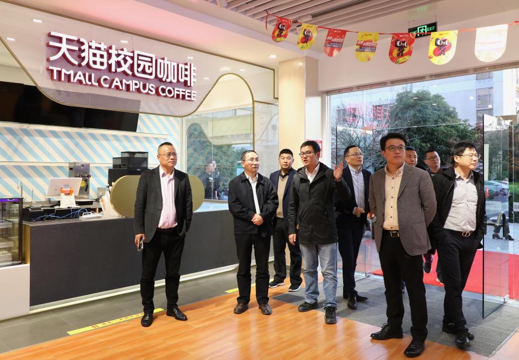 会后,张伟波一行实地参观了东湖服务大厅、集贤食堂、天猫超市、C9菜鸟驿站、西径美食城等。