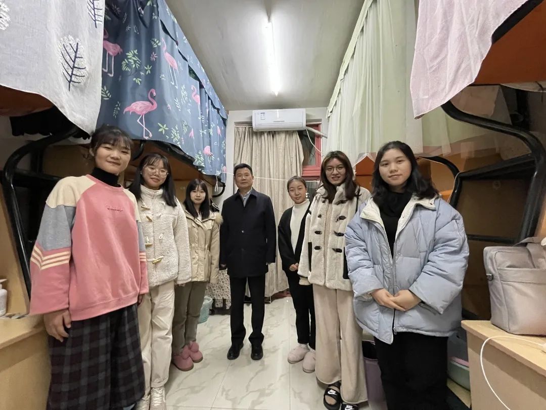 近日,沈希校长来到园林学院部分毕业班寝室,看望毕业班学生。