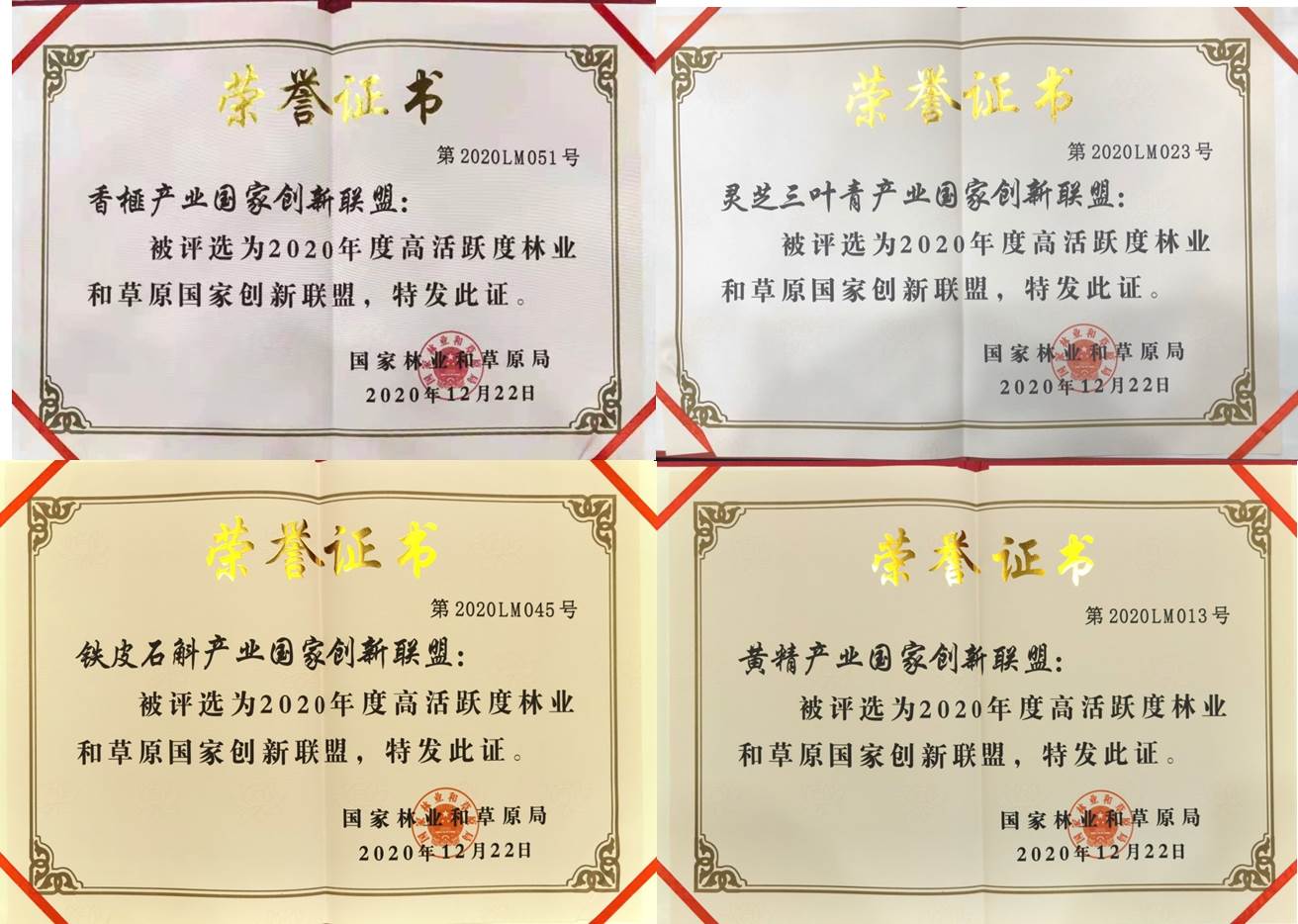 近日,beat365官网香榧产业、铁皮石斛产业、黄精产业和灵芝三叶草产业4个国家创新联盟入选国家林业和草原局“2020年度高活跃度林业和草原国家创新联盟”。