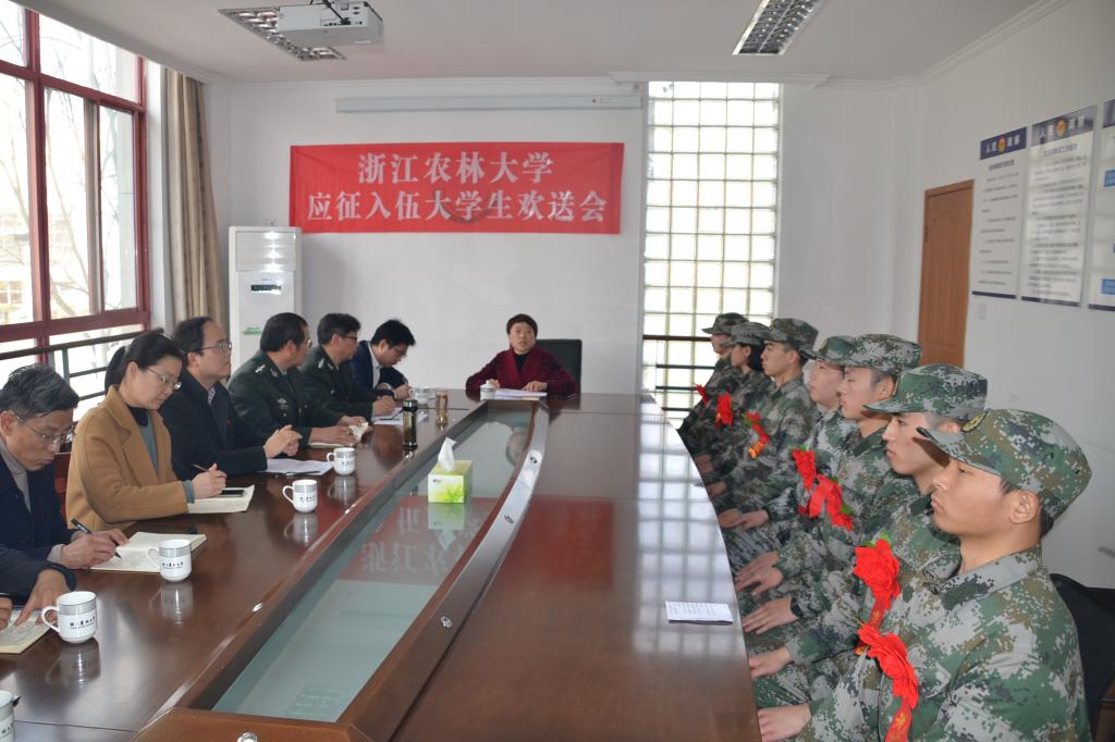3月12日,beat365官网2021年春季入伍大学生欢送会召开,党委副书记施美红出席欢送会,人武部、学工部负责人、相关学院负责人参加会议,欢送8名新入伍同学。