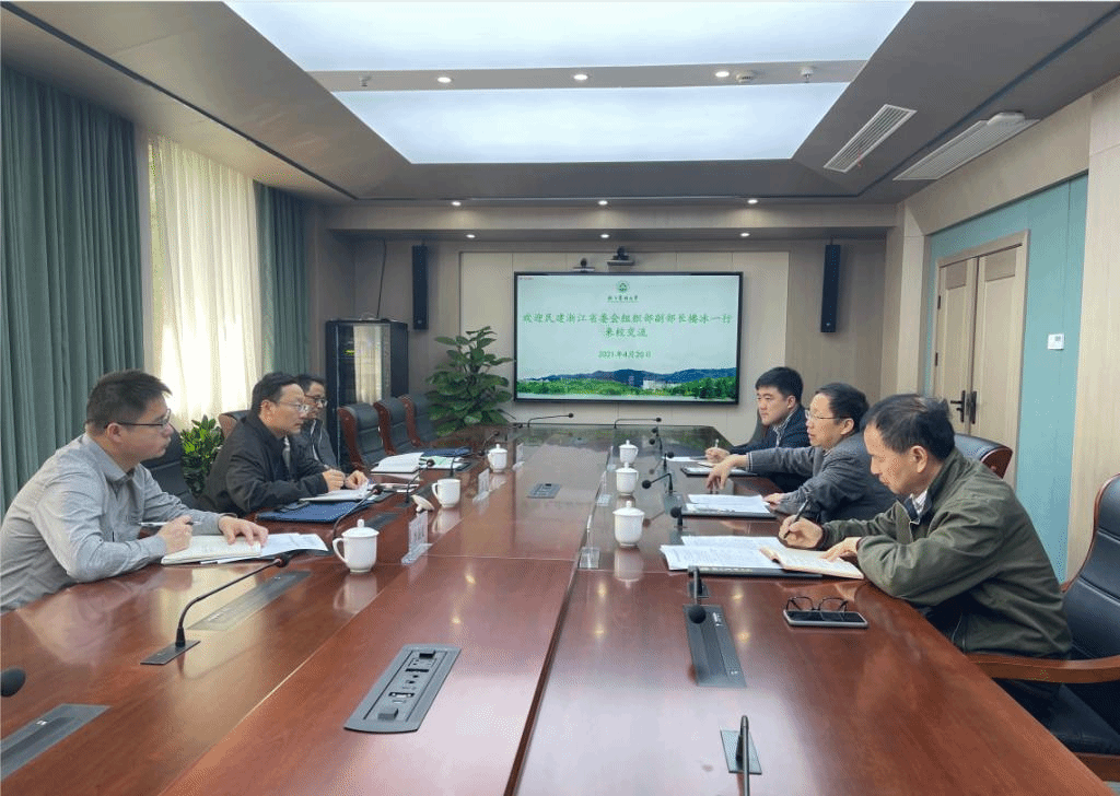 4月20日上午,民建浙江省委会组织部副部长楼冰、组织部三级调研员陈卓、民建农林大学支部联络员李海夏一行来校交流调研,就中国民主建国会beat365平台唯一官网支部换届筹备工作进行座谈交流。校党委副书记冯尚申,统战部相关负责人参加调研。