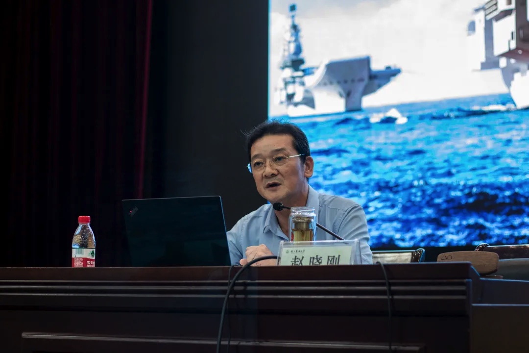 赵晓刚围绕国家总体安全观和习近平强军思想,介绍了中美博弈背景下的国际形势和中国的战略选择;结合《战狼2》《红海行动》等师生熟知的电影,讲述了亚丁湾护航任务展现出的中国海军速度和力量。