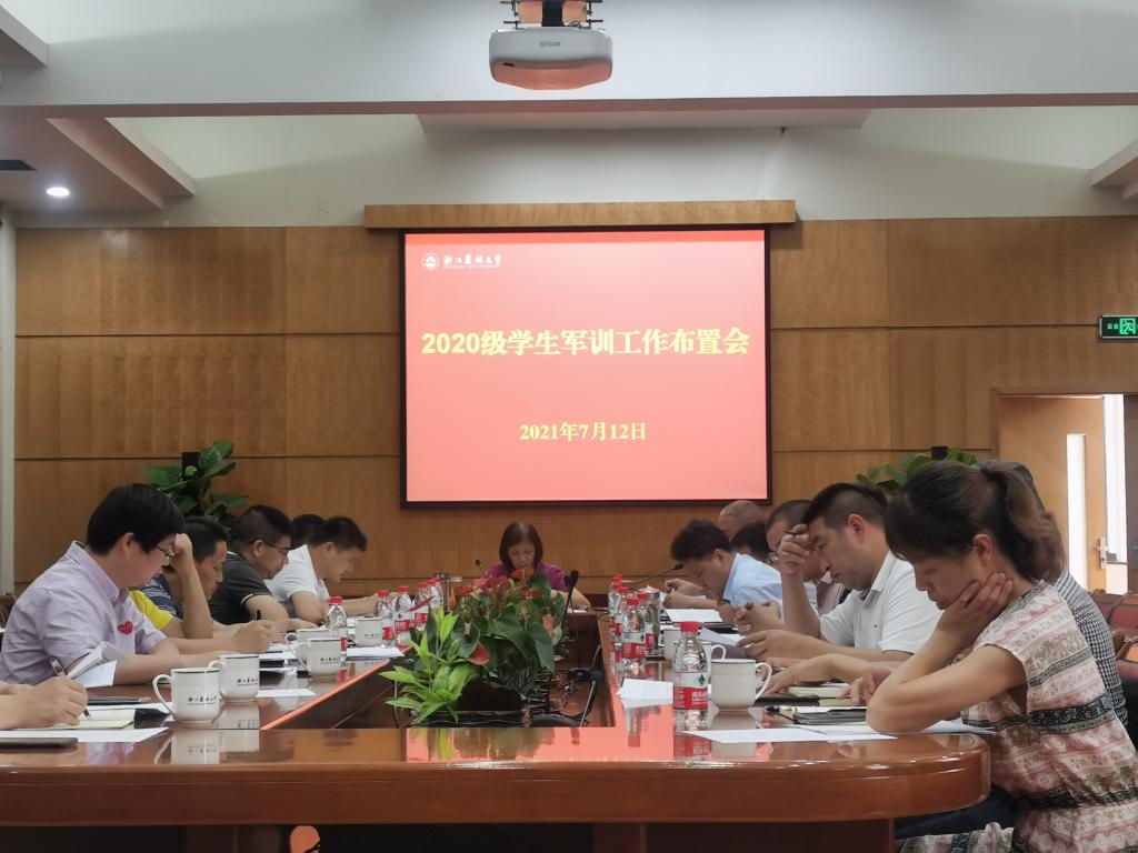 7月12日,2020级军训工作布置会召开。会议由副校长沈月琴主持,校军训工作领导小组成员参加会议。