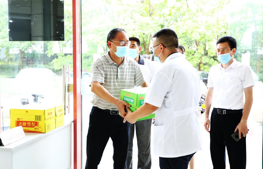 胡祖吉来到集贤食堂、A3A4学生公寓、公寓维修改造点、校卫生所等服务点,看望慰问暑期坚守岗位的一线员工,亲手送上防暑降温用品,并叮嘱大家做好防暑降温,确保安全生产。同时希望大家抓实抓好各项疫情防控工作,按时完成各项维修改造任务,为迎接新学期奠定良好基础。