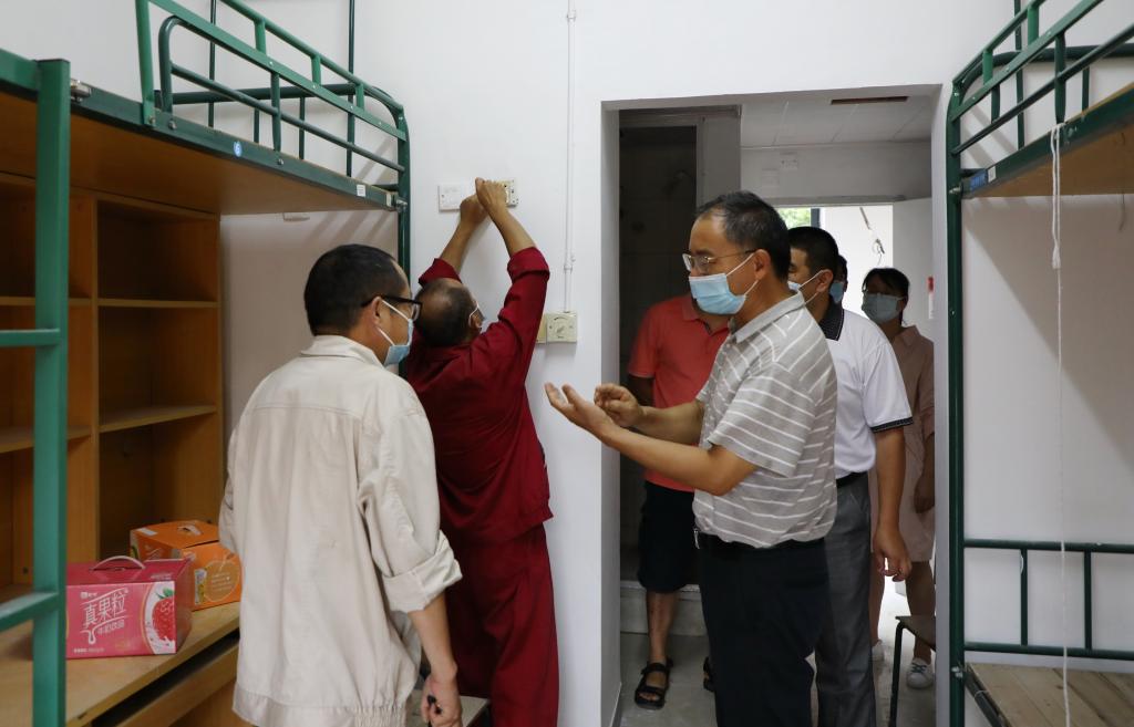 8月14日,副校长胡祖吉在后勤服务中心党委书记郑本军及其他相关领导班子成员的陪同下,看望慰问暑期坚持奋战在一线的后勤员工,并检查指导疫情防控、维修改造等各项工作。