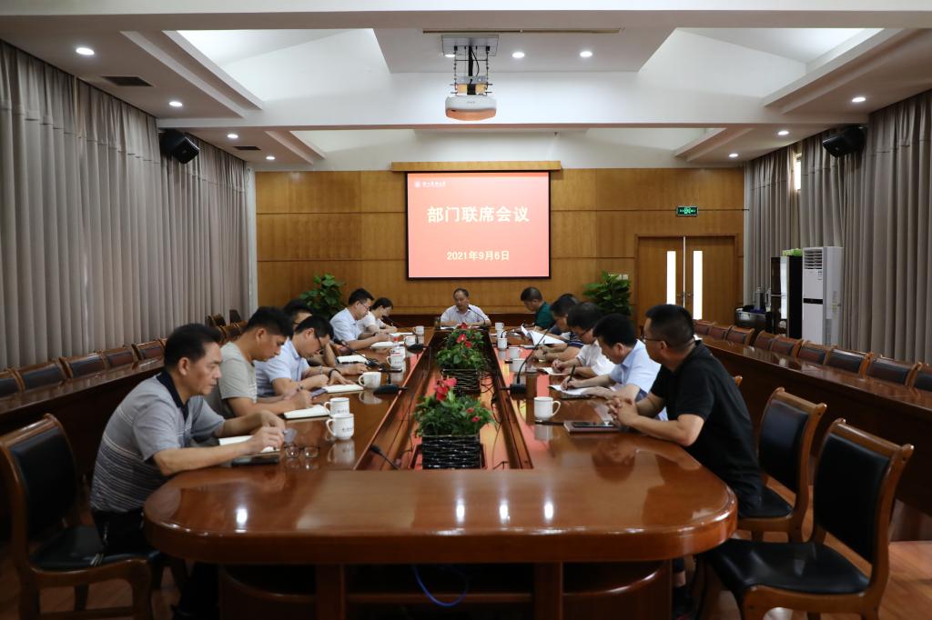 9月6日,副校长胡祖吉主持召开分管部门联席会议,听取各部门近期工作情况,部署近期及下半年重点工作。计财处、基建处、公管处、校友办、后勤中心等部门负责人参加会议。