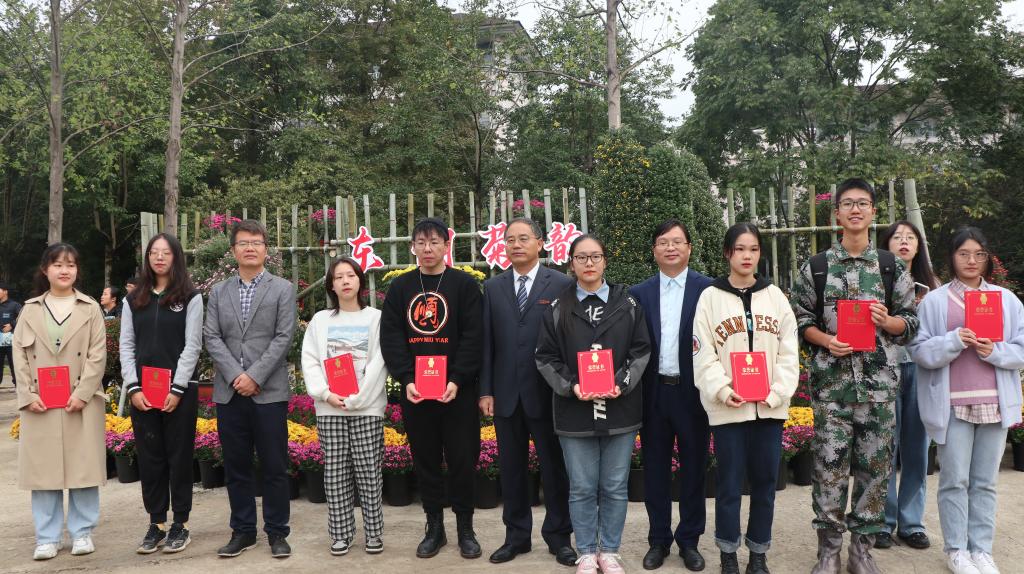 胡祖吉在致辞中充分肯定了此次菊展的筹备工作,希望广大师生用心、用情、用力开展实践教学和立德树人,并为菊文化主题花境设计大赛获奖同学颁奖。文香英女士在致辞中表达了对首届校园菊花展成功举办的祝贺,对学院师生专业化的菊展布置表示赞许,并就今后实践基地建设同实践教学协同发展提出了美好建议。